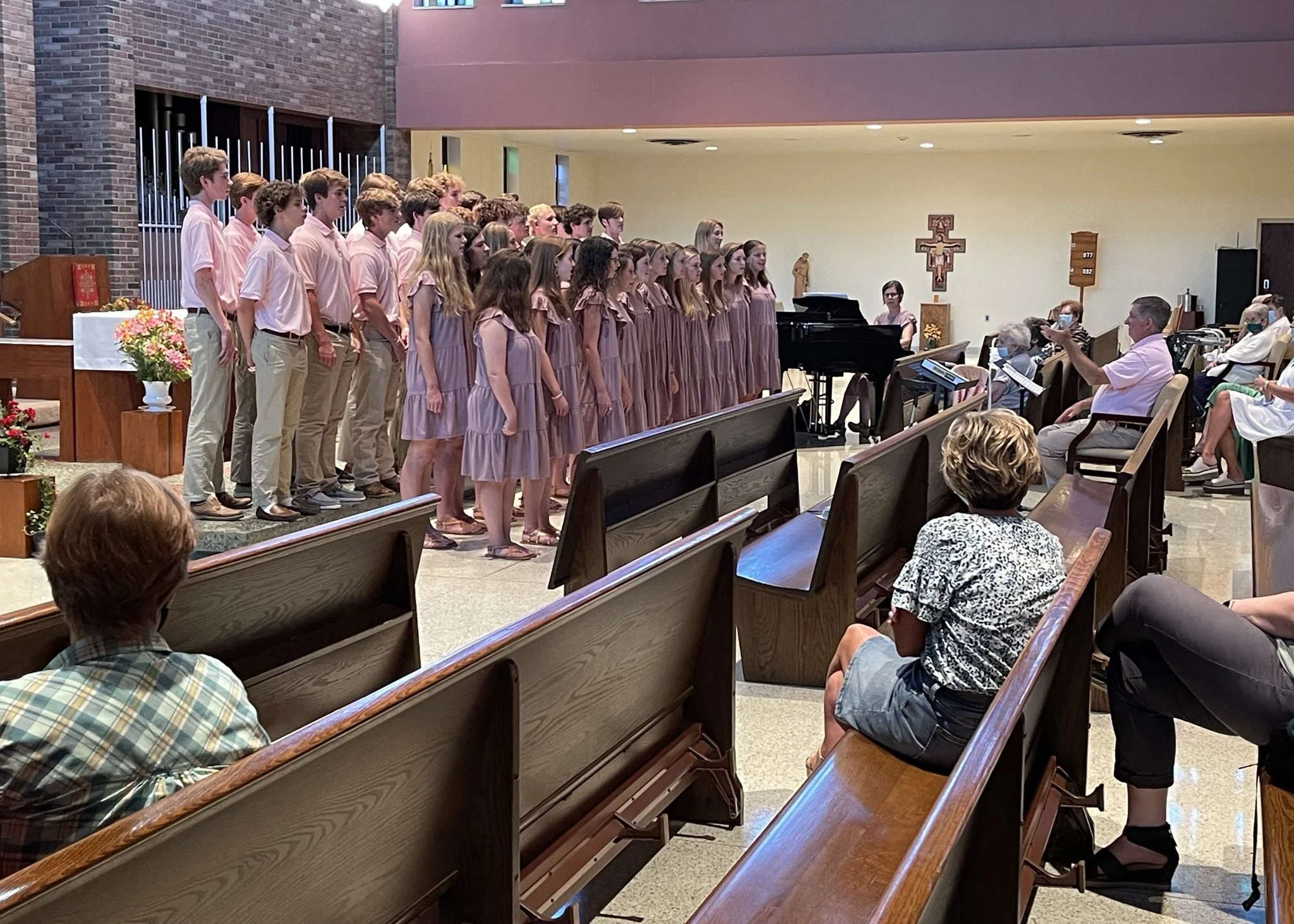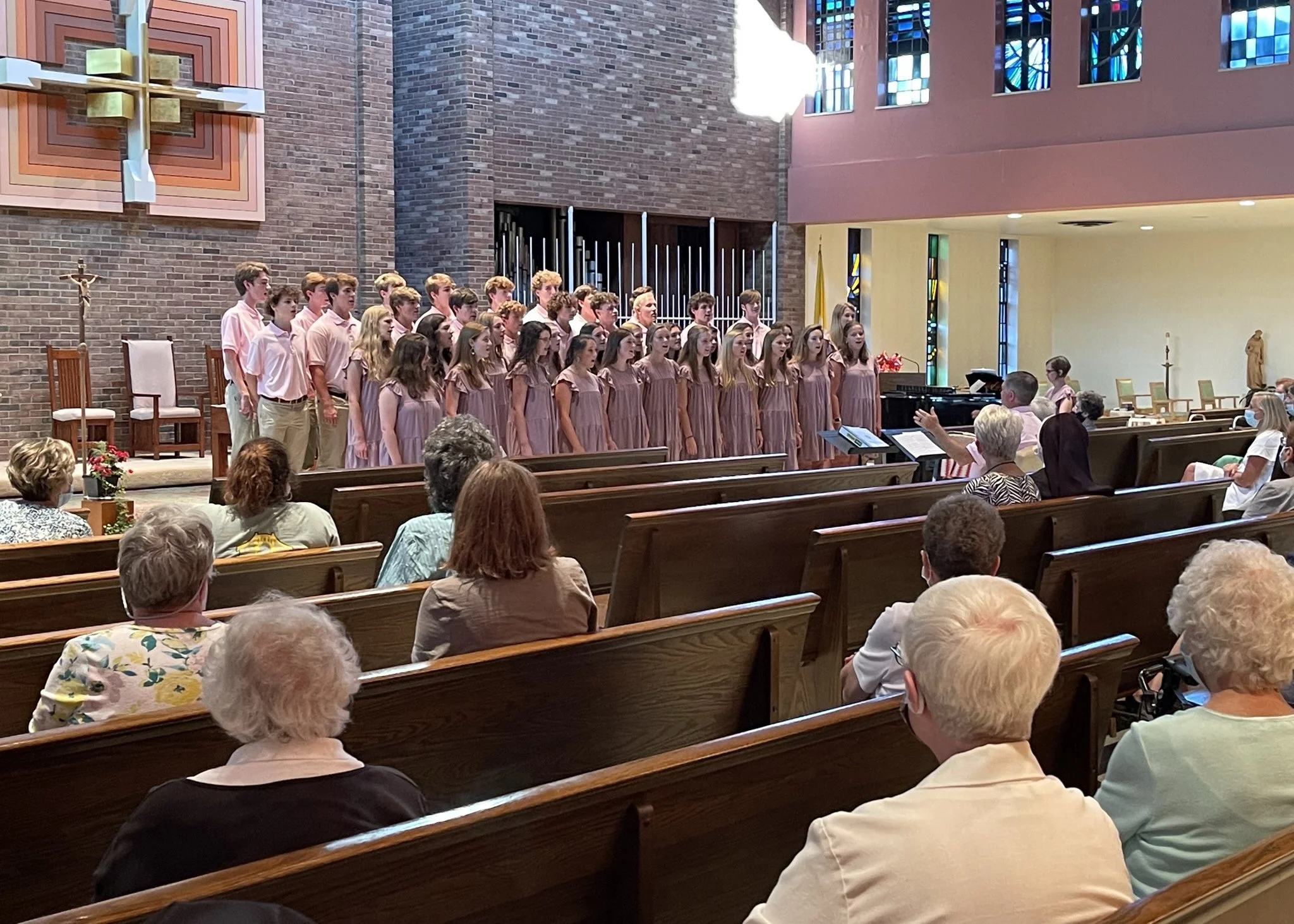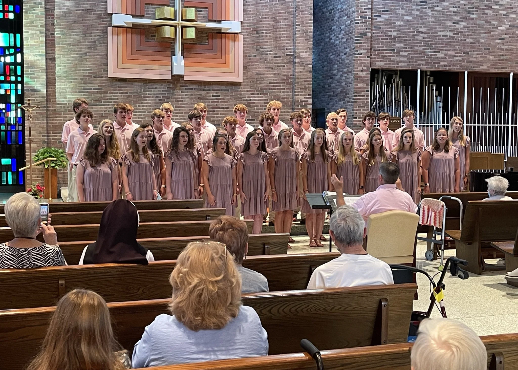 The 42-member choir is in the midst of its annual summer mission trip. While staying at Washington & Jefferson University, they are doing mission work in the mornings and performing at various locations in the evenings. The trip to Pittsburgh and performance at Mt. Assisi Place were originally scheduled for 2020 but were postponed due to the pandemic. The choir made a point of staying in touch with Karen Vevers, our activities director, and rescheduling the date this year.