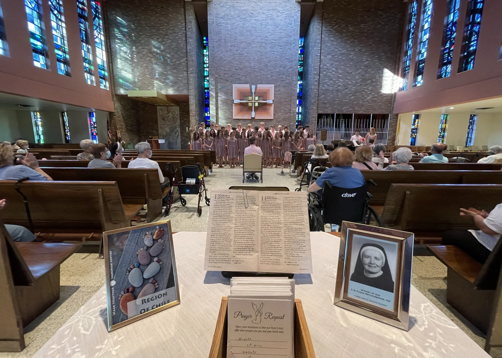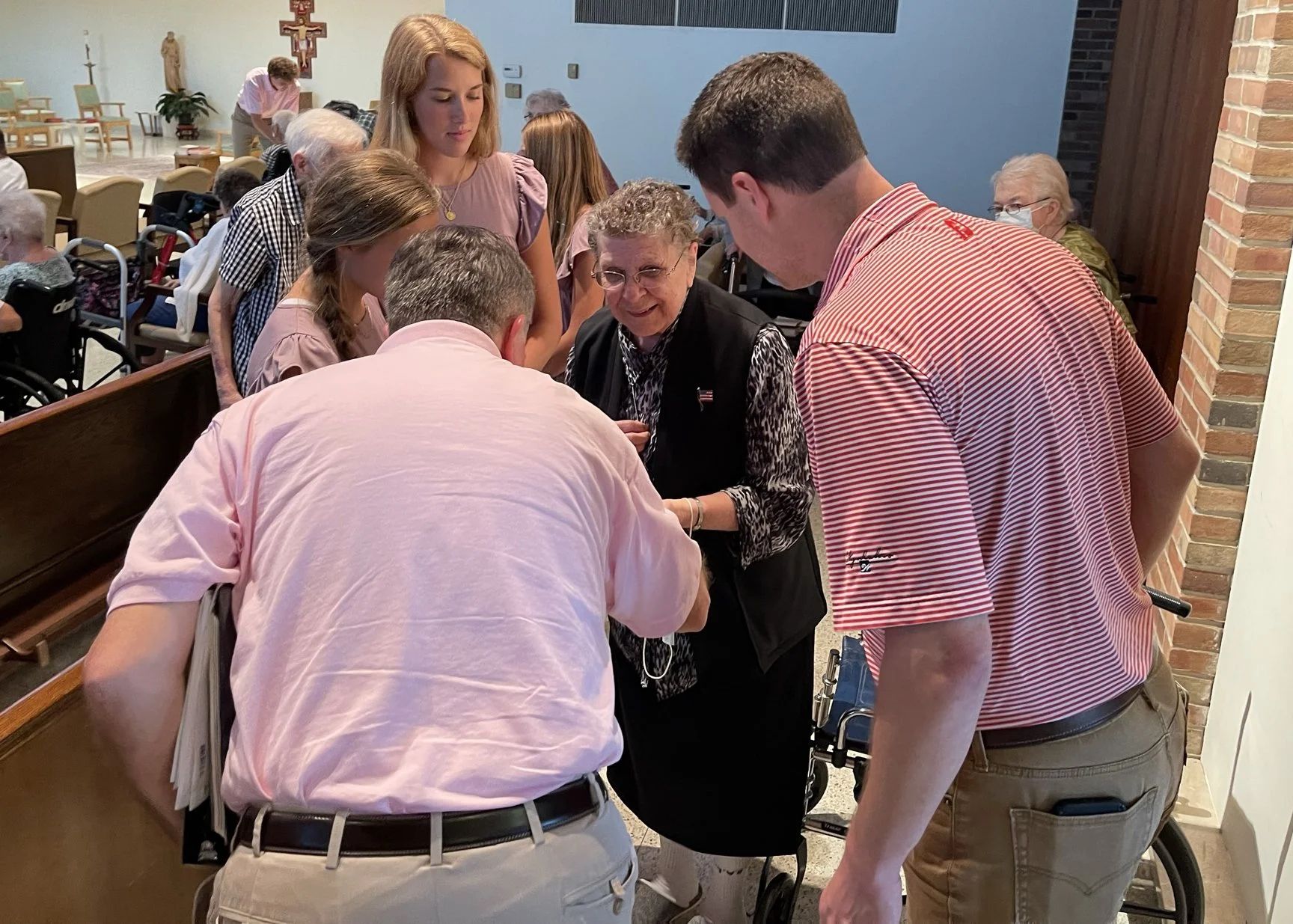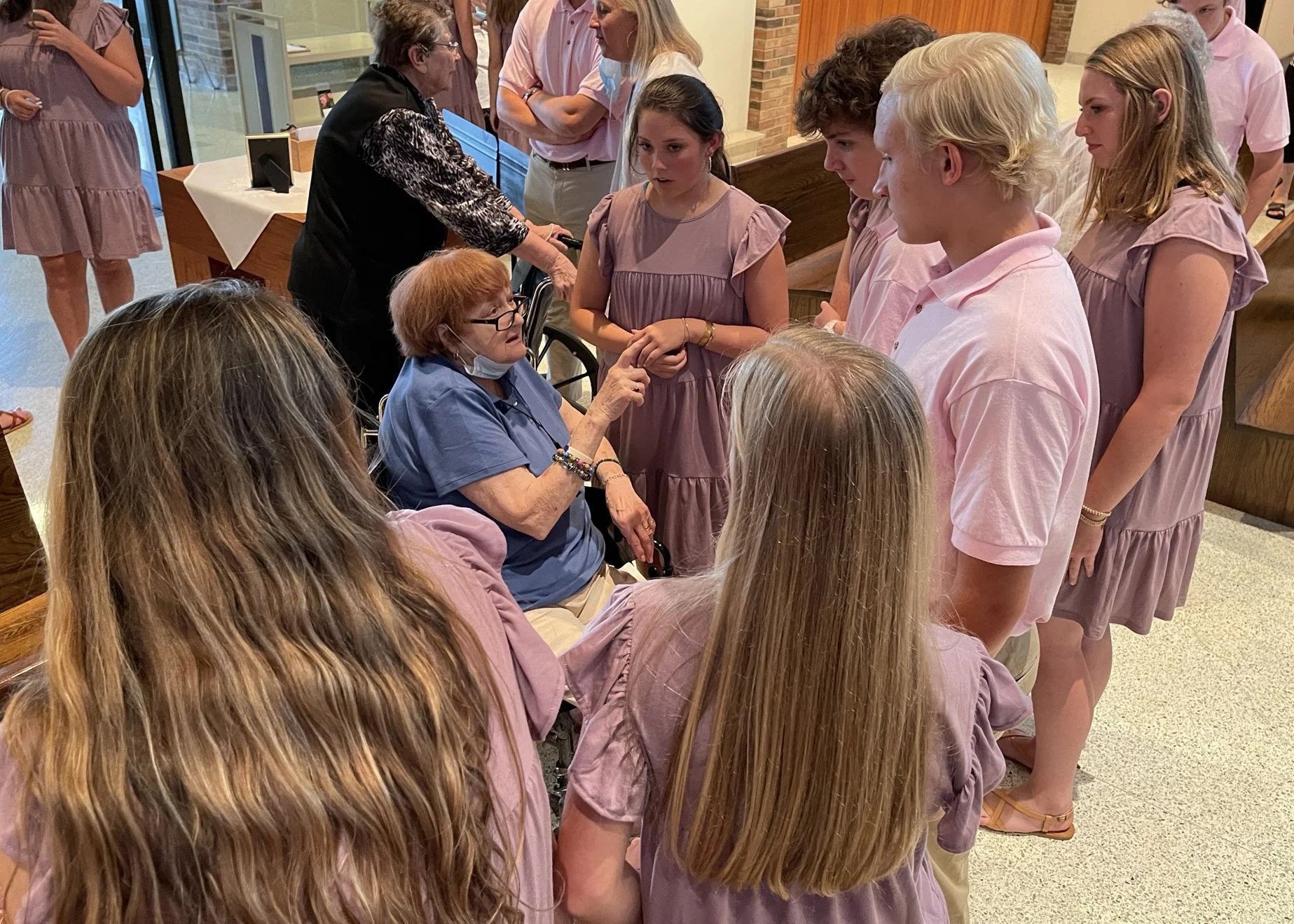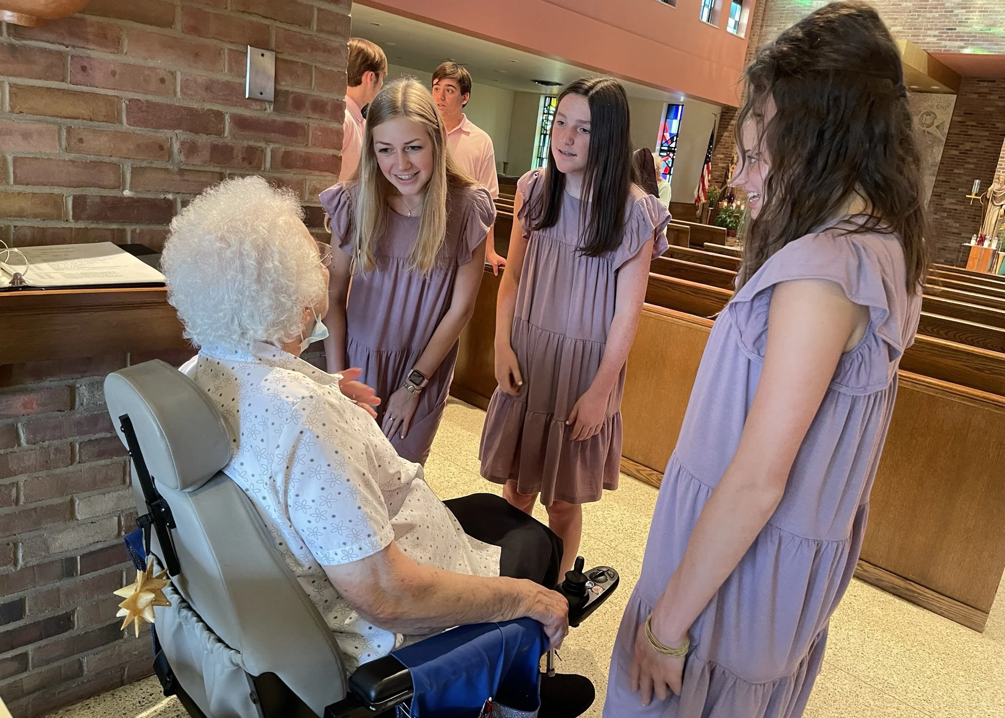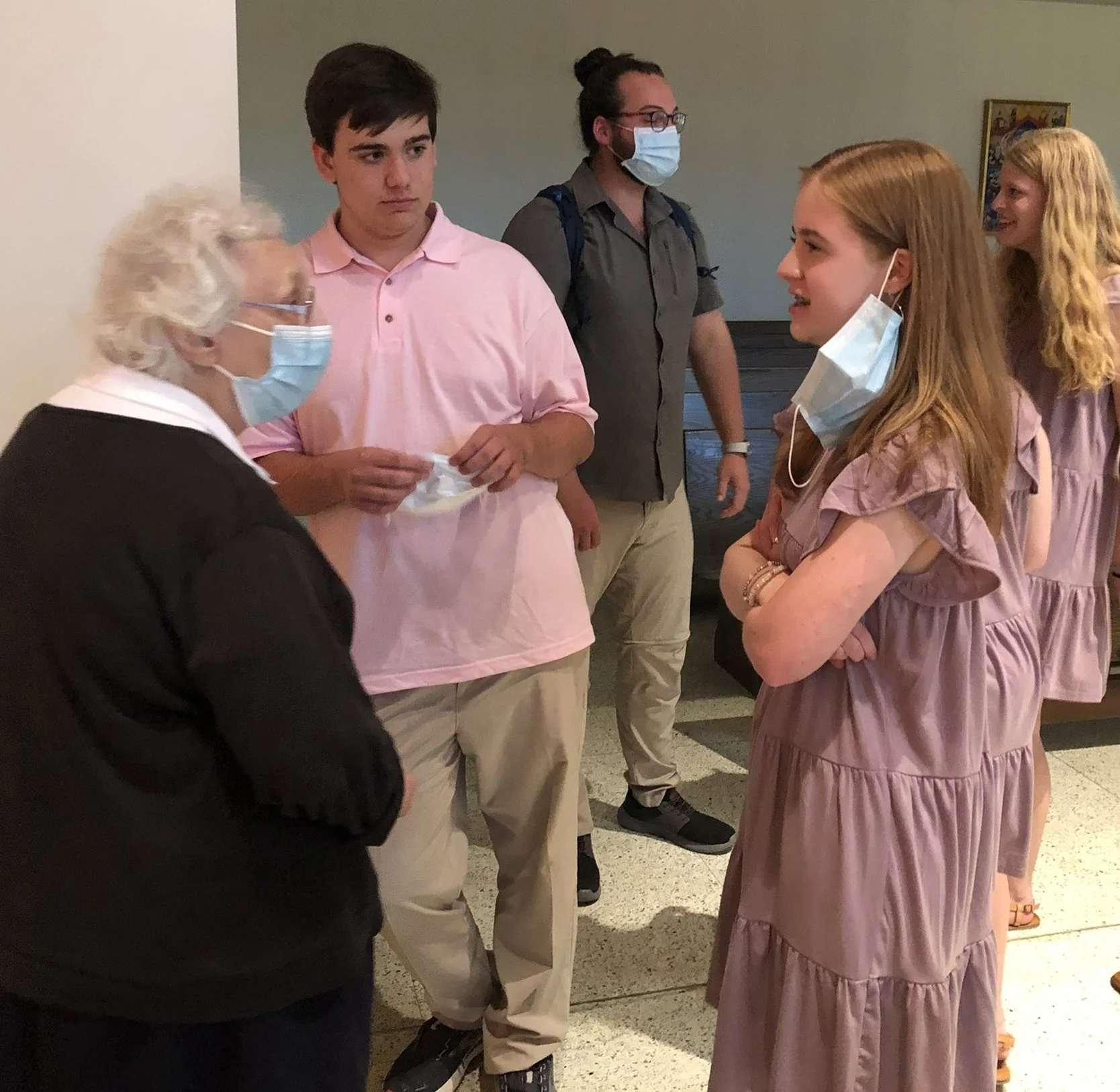The evening also was particularly meaningful for Marian Hall Resident Sister Barbara Ann Lengvarsky, who was moved to tears and requested a group photo to commemorate the occasion. Prior to coming to Mt. Assisi Place, Sister served for more than 30 years in Alabama, not far from where the choir lives and worships.