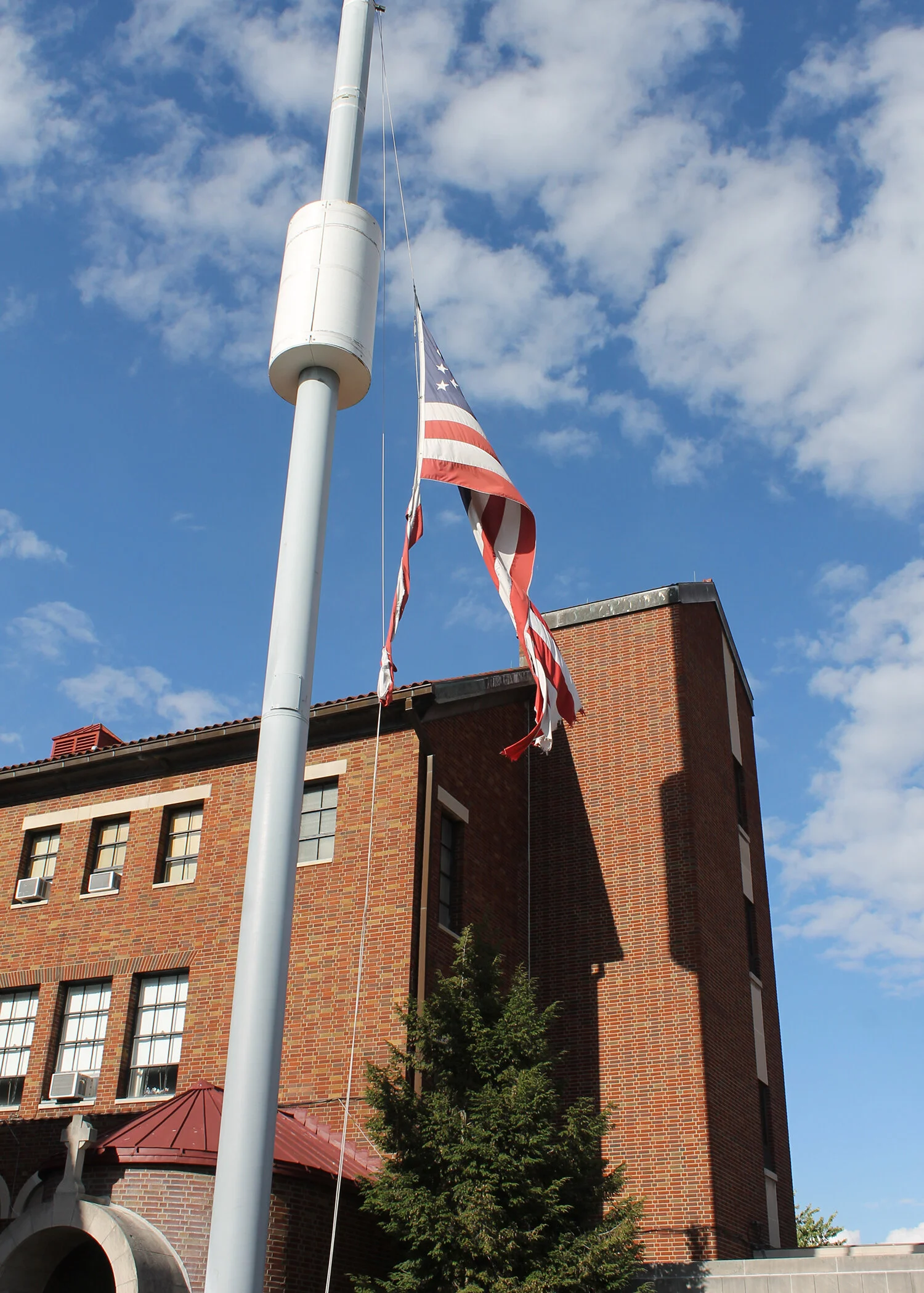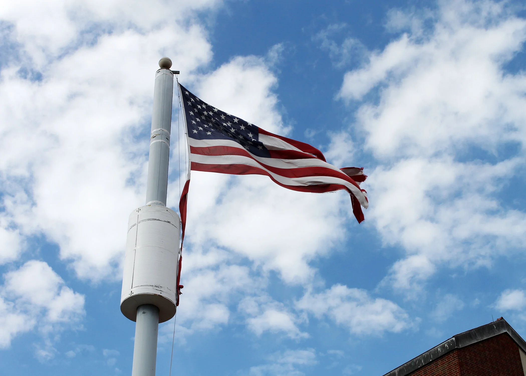 The old flag had become worn and damaged from many Pennsylvania seasons.